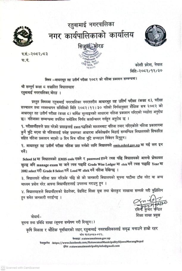 » आधारभूत तह उत्तीर्ण परीक्षा २०८२ को नतिजा प्रकाशन सम्बन्धमा ।