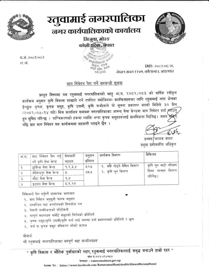 रतुवामाई नगरपालिकाको विशेष अनुरोध ।