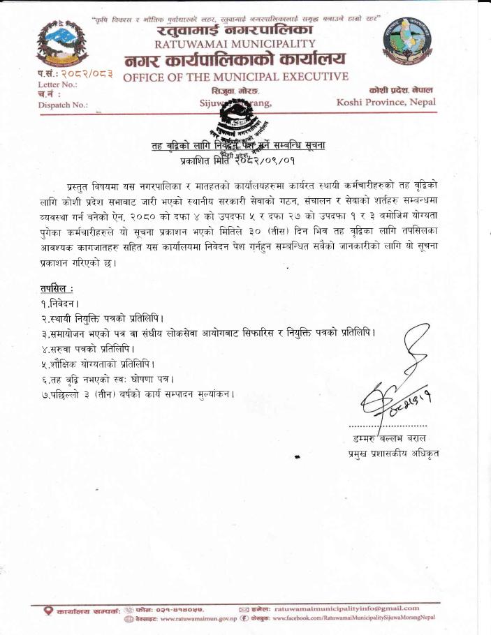 तह वृद्धिको लागि निवेदन पेश गर्ने सम्वन्धमा।