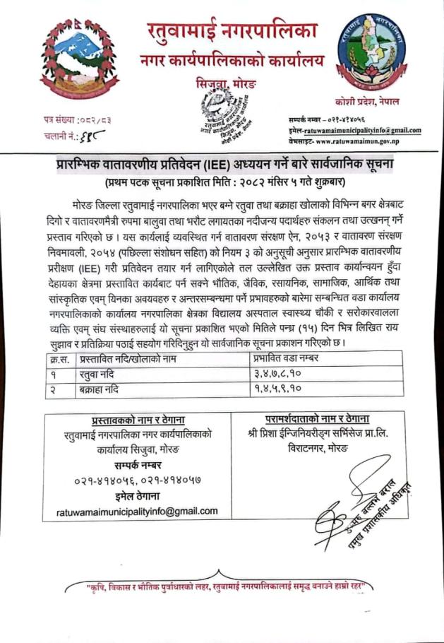 » प्रारम्भिक वातावरणीय प्रतिवेदन IEE अध्ययन गर्ने बारे सार्वजनिक सूचना।