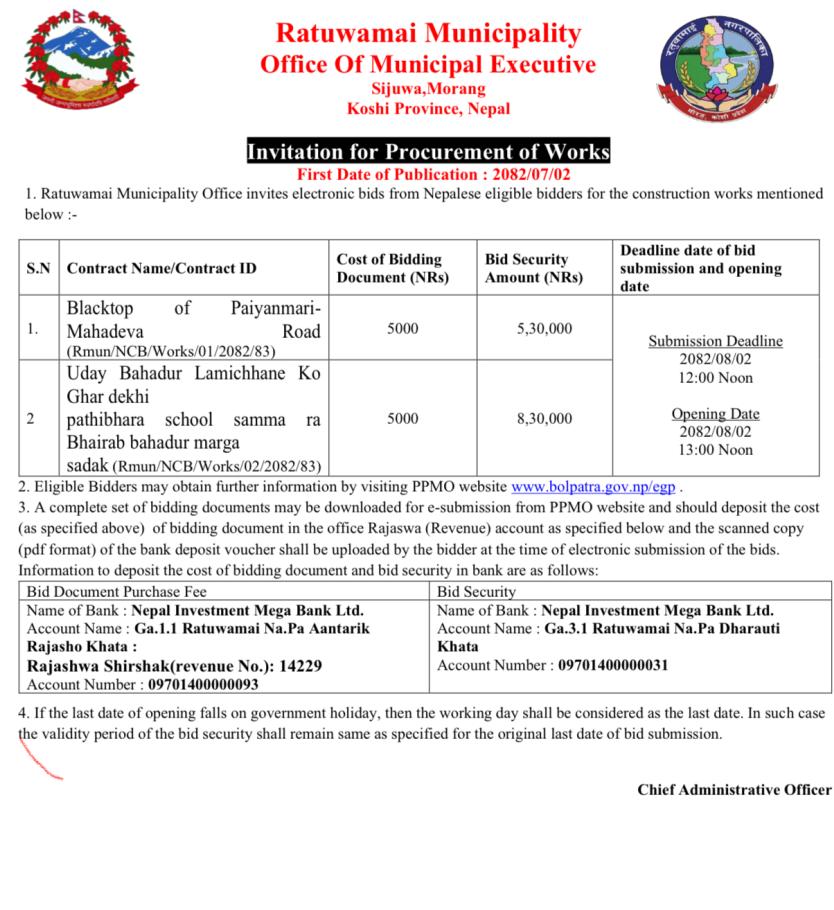 रतुवामाई नगरपालिकाको विशेष अनुरोध ।