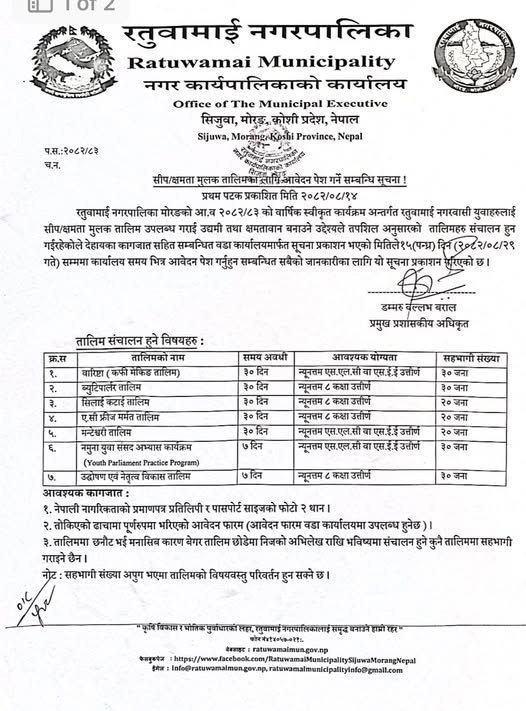सीप/क्षमता मुलक तालिमका लागि आवेदन पेश गर्ने सम्वन्धि सूचना ।